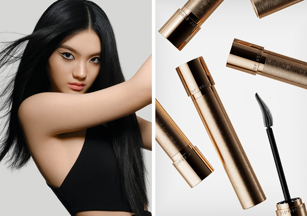 Showcasing a combination of a stock aluminium-clad mascara bottle with a custom cap, this pack reaches new heights of luxury.