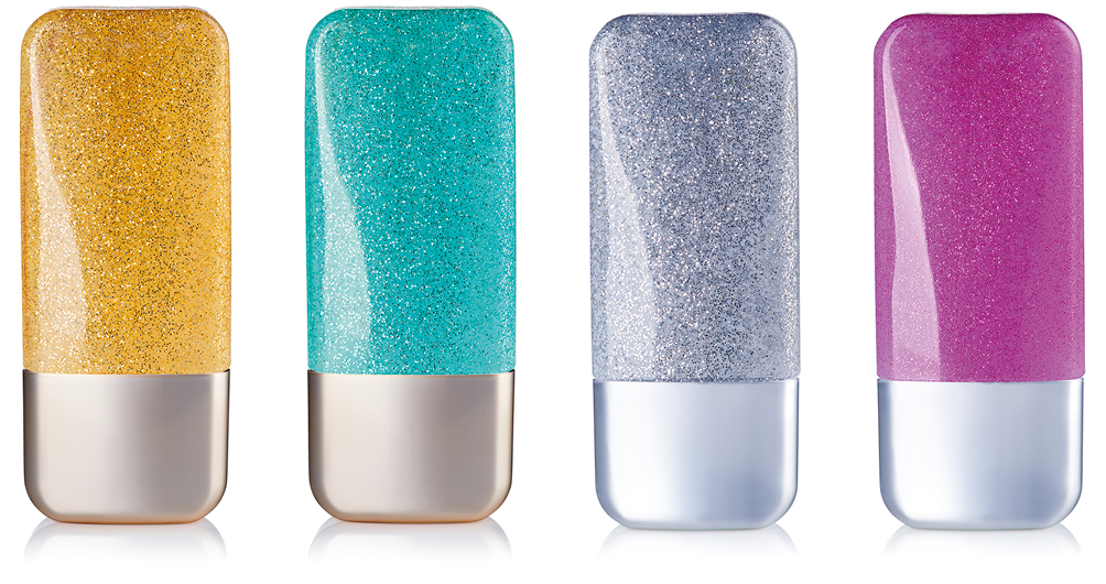 Showcased here on the 15ml Mini Radii Tottle are a selection of sparkling colours and effects ideal to match a variety of special product launches.