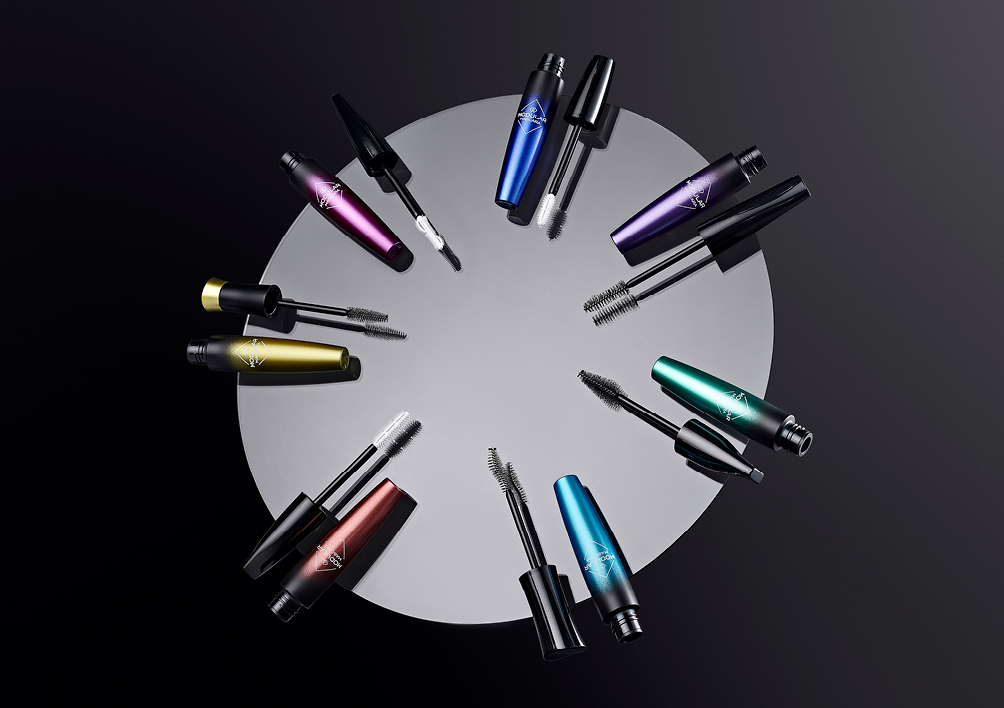 14mm Tapered Tall Mascara (OFC:16.9ml) with L-R: Dune cap (VK186/FL199) with Wave Shape (MA7382 Curved 2), Corset cap (SA102/FL199) with Spider 3 (MA7267 S3) and Athena cap (VK207/FL199) with Teardrop (MA7364).