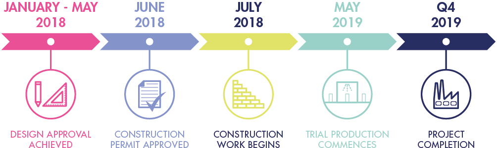 The layout, designed with a lean manufacturing philosophy in mind, is finalised and construction commenced in March 2018. Adding three new buildings for injection, spraying and warehousing (38,800m²), HCP will invest in 100 new injection moulding machines, installing 40 during 2018 and 6 new finishing spray lines; with a further 60 injection machines with a phased annual roll out. The project is planned to complete at the end of 2021.