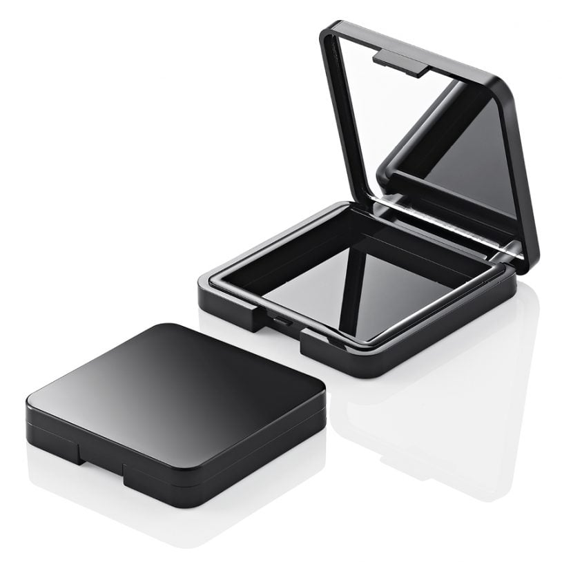 The Wave Pressed Powder Compact has a soft square profile, a plastic hinge and full sized mirror.